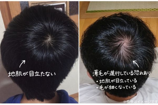 個人差があるものの、地肌が目立っている場合、薄毛が進行しているサインと考えられる。